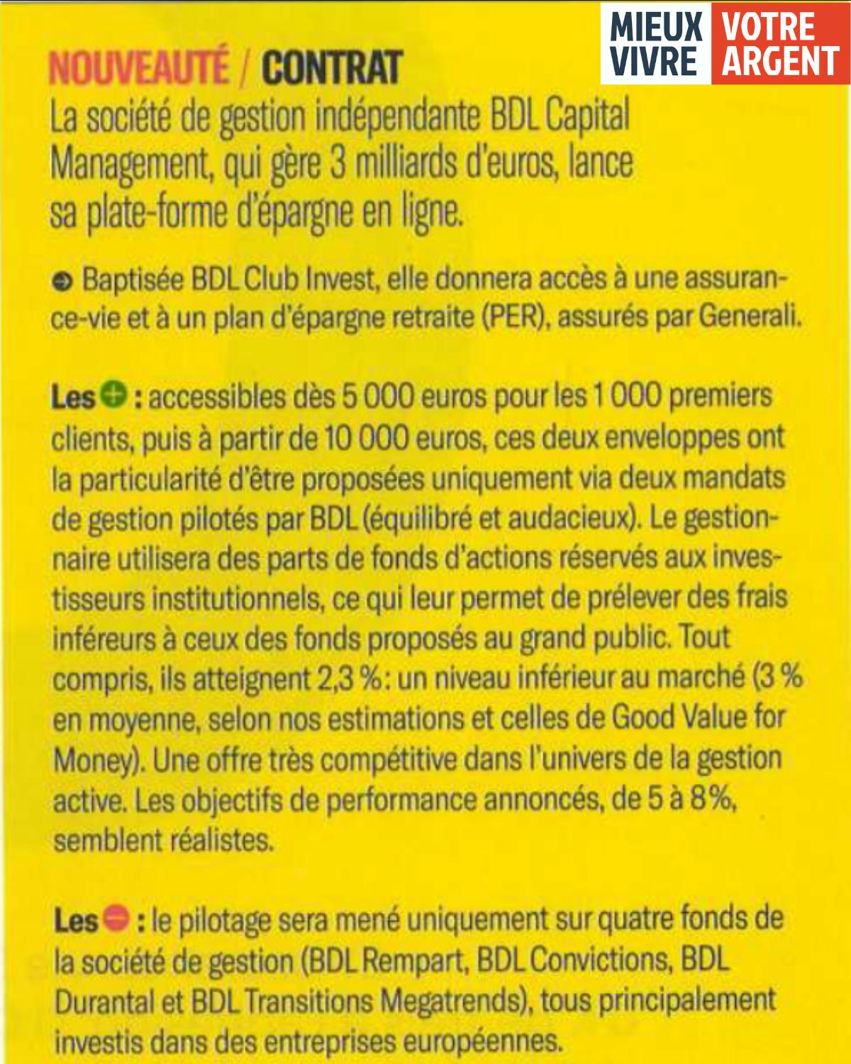 Communiqué de presse - Lancement BDL Club Invest en partenariat avec Generali