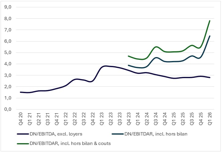 Ratio d’endettement (Dette nette / EBITDA) de Oracle en incluant le hors bilan