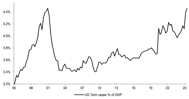 Le second canal est macroéconomique. D’une part, une baisse des indices boursiers pèserait sur le consommateur américain, fortement exposé aux actions. D’autre part, l’ensemble de la chaîne de valeur industrielle de l’IA serait affecté. Les fabricants de data centers, les fournisseurs de composants, les équipementiers électriques et les acteurs de l’énergie dépendent de cette dynamique. Aux États-Unis, les dépenses liées à l’intelligence artificielle ont contribué à environ 60 % de la croissance récente du PIB réel. Un ralentissement de ces dépenses aurait donc un impact direct sur la croissance agrégée.